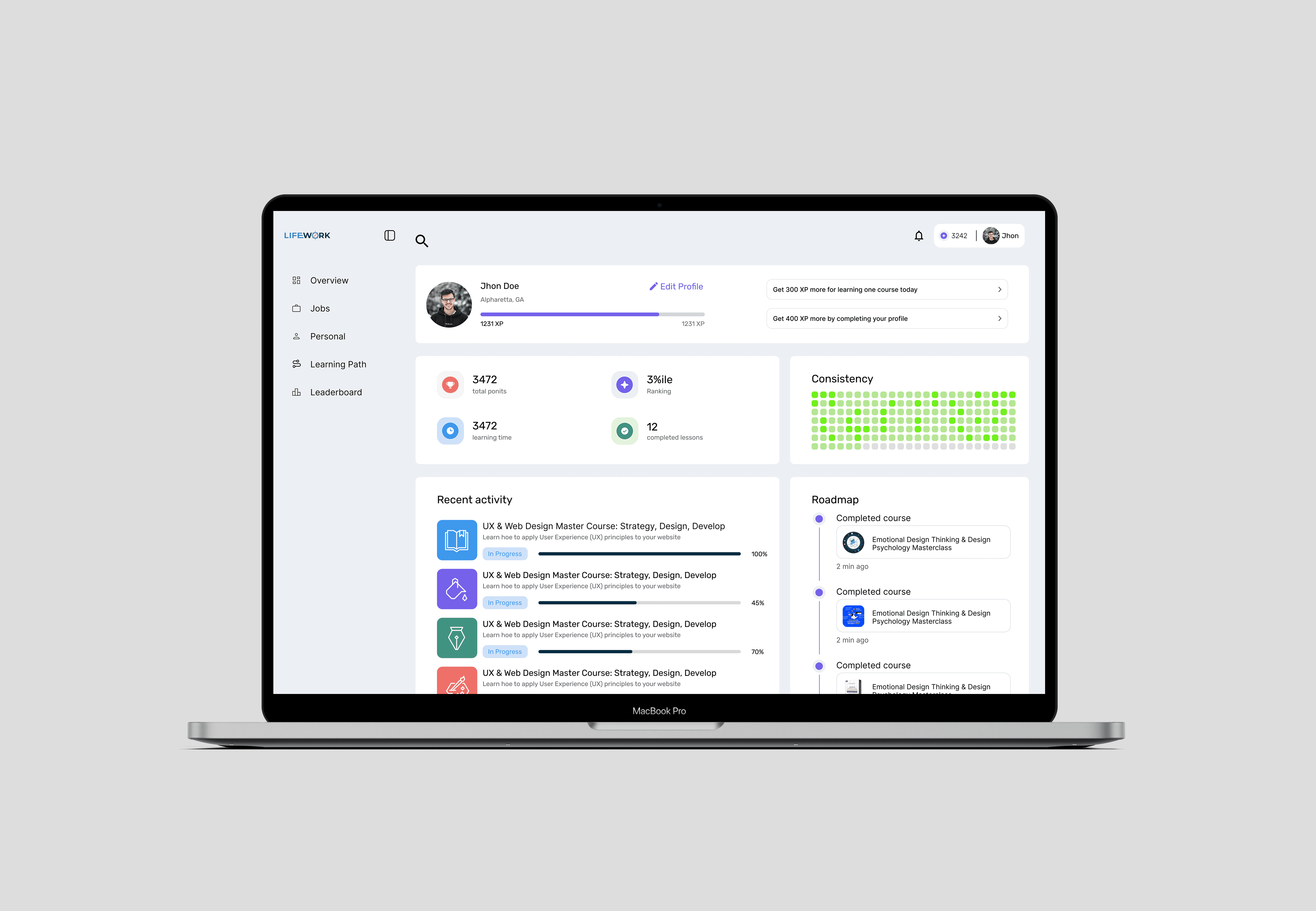 I led the design for Lifework MVP with a clear goal: Make personal and professional growth simple, using AI and personalized insights.